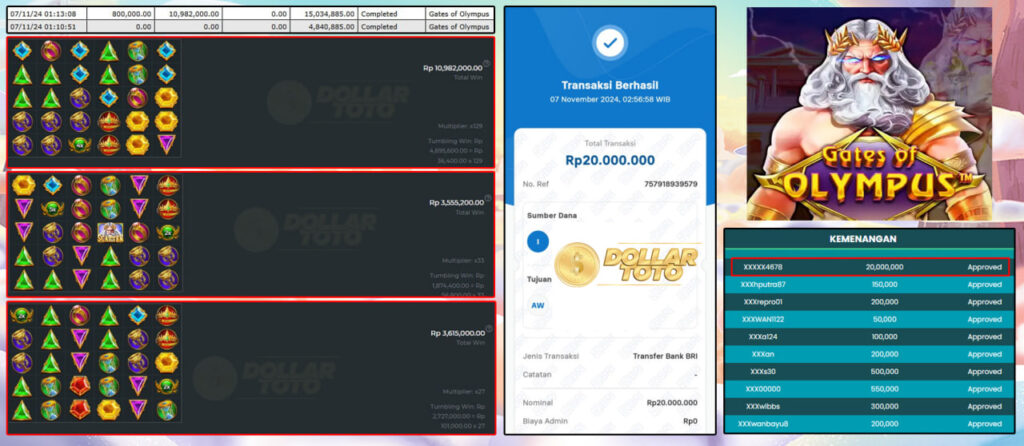 SELAMAT KEPADA MEMBER DOLLARTOTO, USER ID : XXXXX4678, MENANG DI GAME PRAGMATIC SLOT > GATES OF OLYMPUS