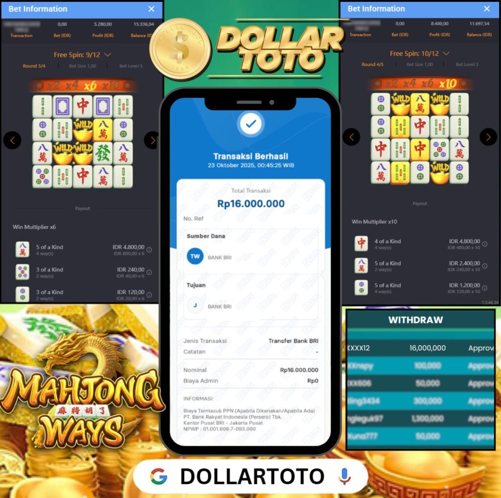 Selamat kepada member yang bermain di DOLLARTOTO dengan user id JXXX12 yang telah mendapatkan kemenangan SENSATIONAL di game MAHYONG WAYS > PGSOFT . Untuk kemenangan sebesar Rp. 16.000.000 sudah berhasil kami proseskan secara lunas dan tuntas tanpa adanya macet macet !! Segera daftarkan dirimu sekarang dan jadi pemenang selanjutnya di DOLLARTOTO