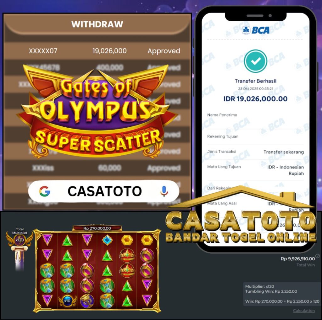 SELAMAT UNTUK MEMBER CASATOTO dengan Username : HXX1207 berhasil meraih kemenangan besar di permainan GATES OF OLYMPUS SUPER SCATTER – PRAGMATIC PLAY SLOT.