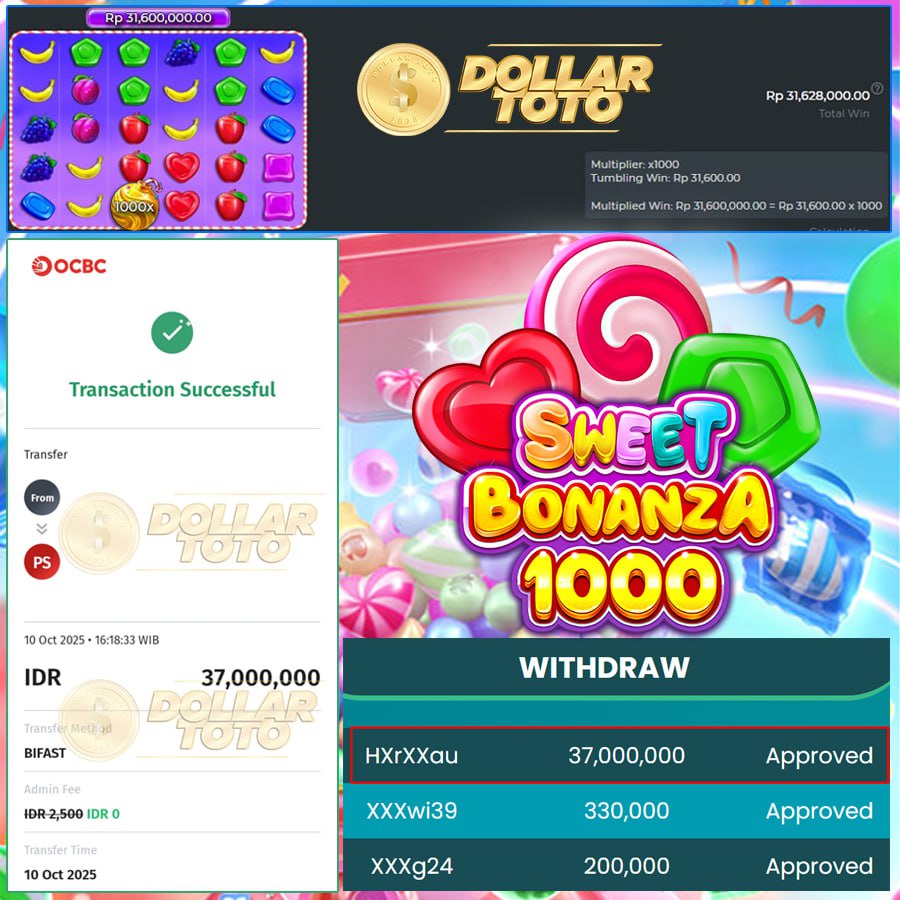 SELAMAT UNTUK MEMBER DOLLARTOTO dengan Username HXrXXau berhasil meraih kemenangan besar di permainan SWEET BONANZA 1000 – PRAGMATIC PLAY SLOT.