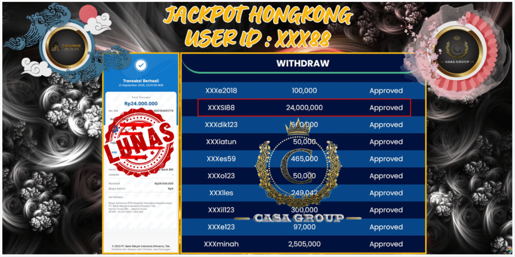Selamat untuk member yang sudah jackpot dipasaran HONGKONG disitus CASAPRIZE