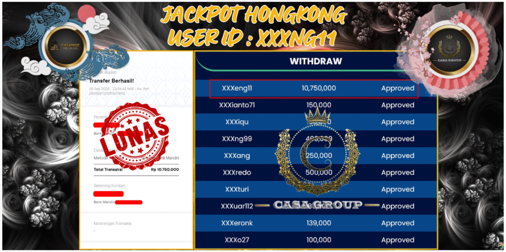 Selamat untuk member yang sudah jackpot dipasaran HONGKONG disitus CASAPRIZE