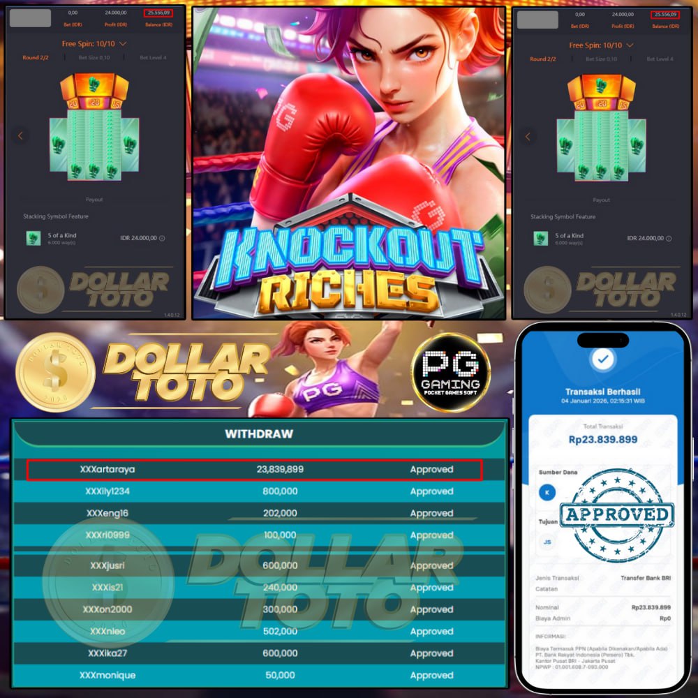 TAMBOHH LAGI DOLLARTOTO!!! PG SOFT JUGA GAK MAU KALAH!! 24JT JP DI KNOCKOUT RICHES LANGSUNGG LANDING MULUSSS!!!