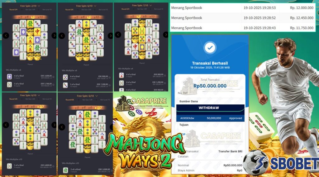 TAMBOHHH CASAPRIZE!!! JP LAGI 50JT DI SBOBET x MAHJONG WAYS 2 LANGSUNG DIBAYAR LUNASS!! KELASSS!!!